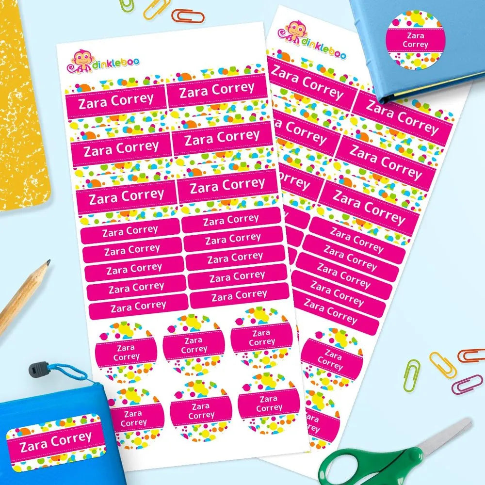 Our versatile mixed label pack offers the perfect solution for labeling all your belongings. With a combination of rectangle, mini, and round labels, you can easily identify everything from lunchboxes and water bottles to stationery and toys. These durable labels are designed to withstand everyday wear and tear, ensuring your items stay organised and safe. Customise them with your child's name for a personal touch.