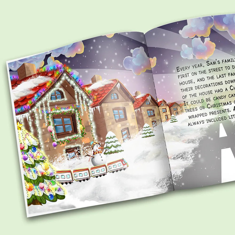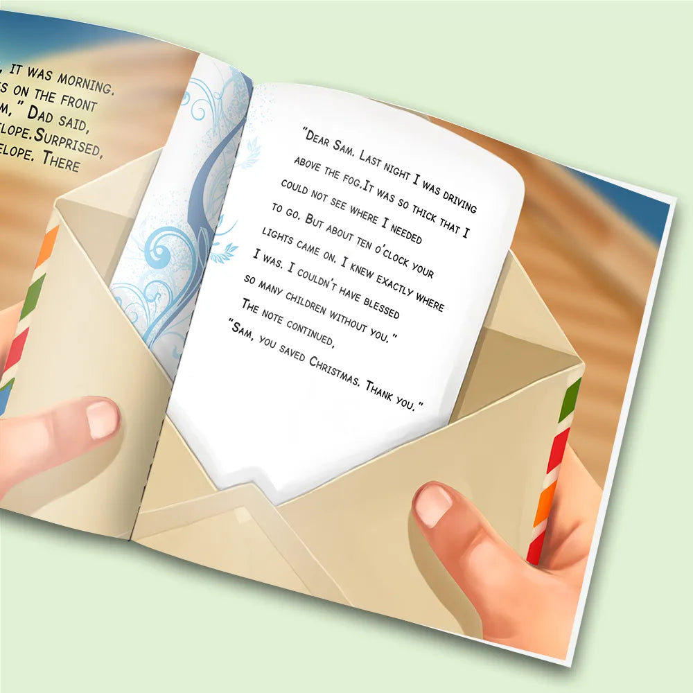 A great feel-good story where your son or daughter saves Christmas by turning on bright Christmas lights to help Santa see on a foggy night. Watch the joy on your child's face as they save Christmas.