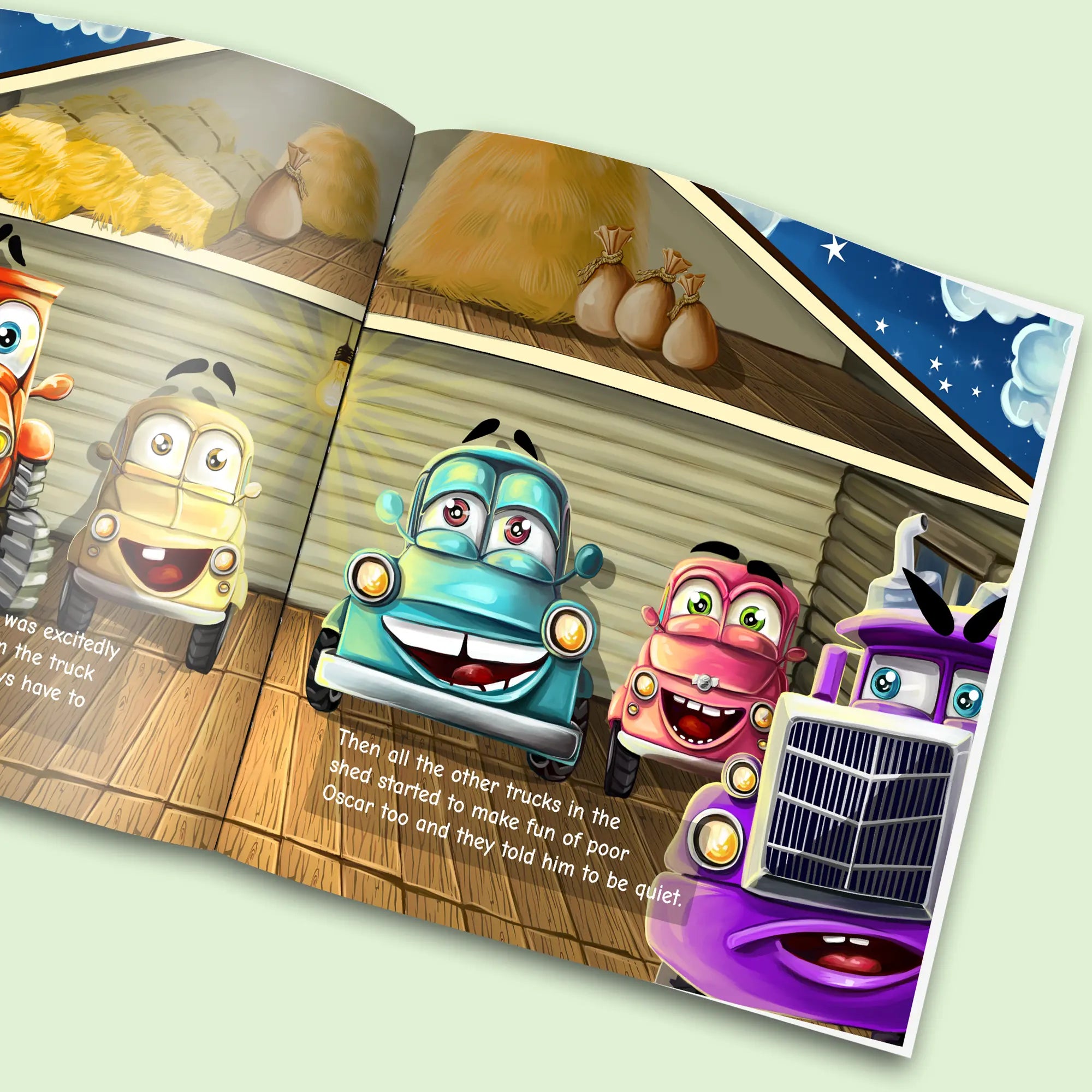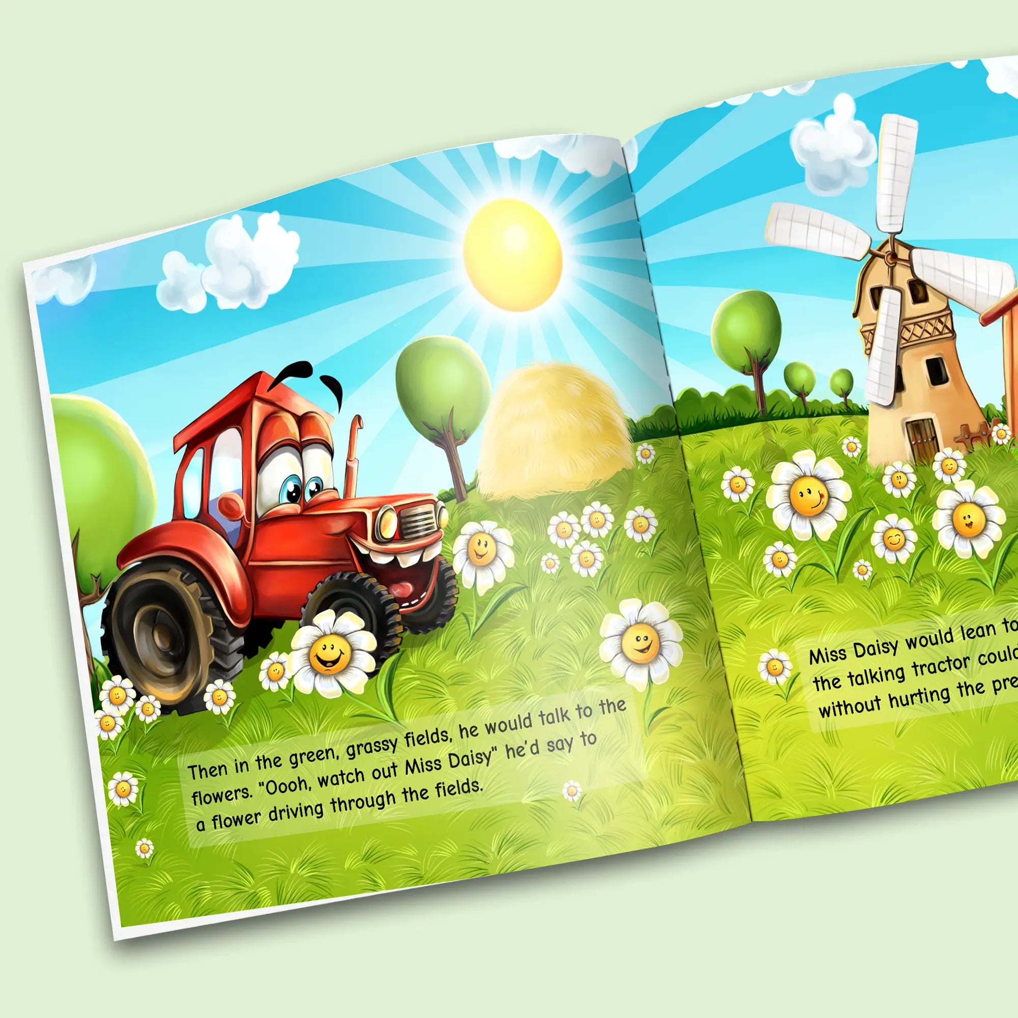 A story about your son or daughter being a red tractor that never stops talking! Your child goes around the farm talking to all the farm animals and other truck friends. All the other trucks make fun of the tractor for talking too much until they realise how helpful the tractor is.