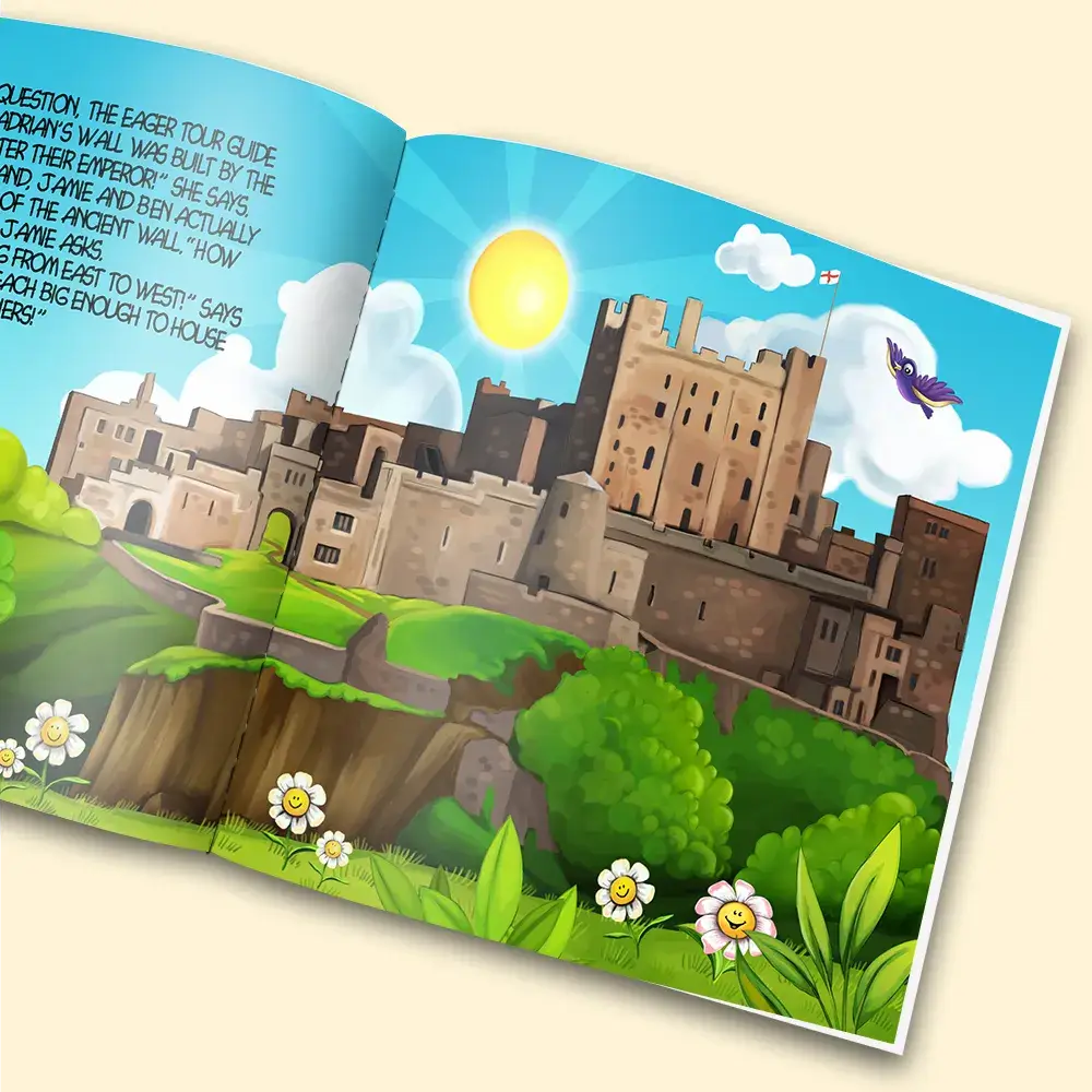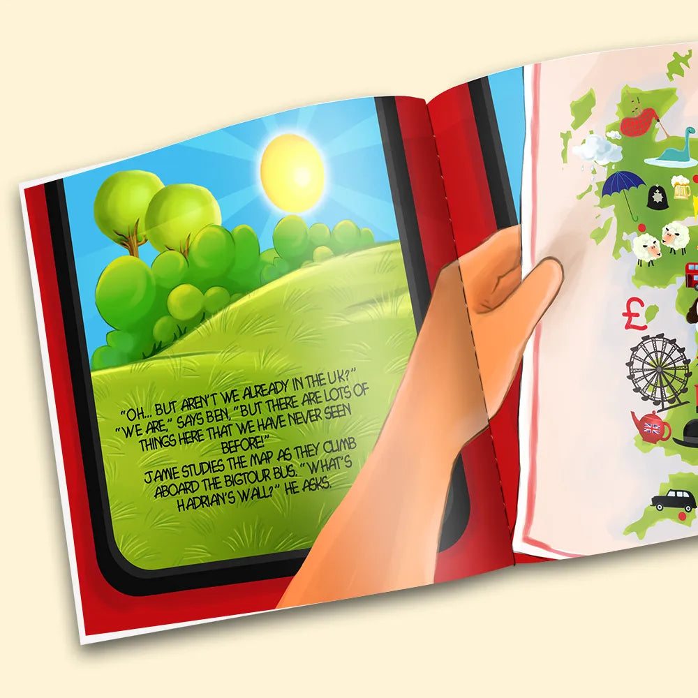 A feel good story about your son or daughter going on a fun-filled adventure around the United Kingdom. Traveling on a big tour bus they visit many places like Hadrian’s Wall, Tower of London, Big Ben, Buckingham Palace and much more…